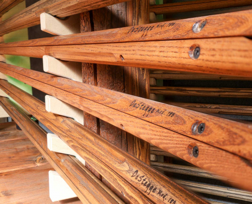 Entstanden ist die Bezeichnung nachdem Mario die ersten Exemplare fertig hatte, und sein Jagdfreund Falko immer wieder fragte, „hossde dein Stegge debei“ was soviel heißt, wie,“ hast du deinen Stock mit“.